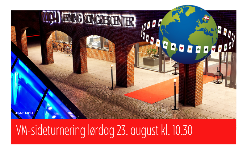 Du kan også spille med til verdensmesterskaberne til sommer i Herning. Hver dag under VM afholdes sideturneringer, afviklet af enten Herning Bridgeklub eller DBf.
