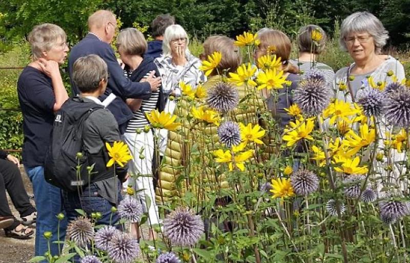 Vi starter aftenen med en tur rundt i bestyrelsesmedlem Birgits skønne landbohave og fortsætter snakken i en af længerne, hvor vi byder på kaffe/the og kage.