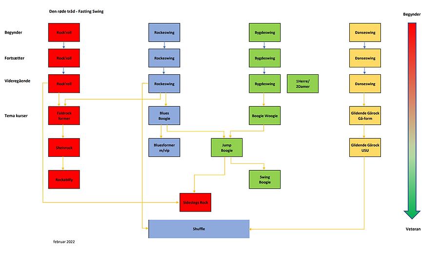 Ønskes f.eks. Jump Boggie, skal danserne have deltaget i kurser i Blues Boggie og Boggie Woggie først.