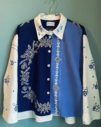 Underviser Line Skov Randrup, som under firmanavnet Elina syer og designer tøj og tilbehør af genbrugstekstiler. Det er især gamle duge, der forvandles til ny beklædning, men også sengetøj, herreskjorter og andet genbrugstekstil kan bruges. Line har en designbaggrund og underviser også i Redesign. Du kan se meget mere om hendes genbrugsprojekter på Instagram @elinashopdk.