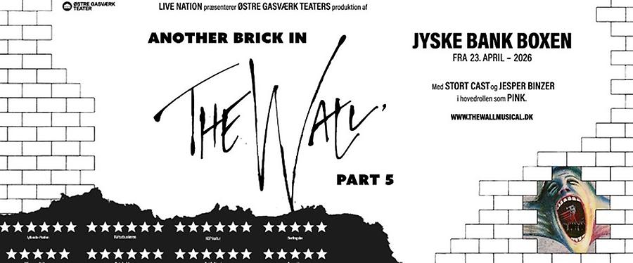 Efter en overvældende succes på Østre Gasværk Teater og Musikhuset Aarhus rykker ANOTHER BRICK IN THE WALL, PART 5 nu ind i arenaformat. Den spektakulære teaterkoncert får premiere 23. april 2026 i Jyske Bank Boxen, hvor publikum kan opleve en banebrydende fusion af teater og rockkoncert i stor skala.